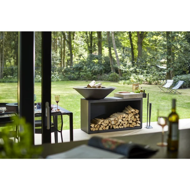 Le braséro plancha OFYR Island 100 est non seulement polyvalent mais également pratique. Le braséro se transforme en plancha à bois à l’heure du repas ou en barbecue avec la grille de cuisson en acier.