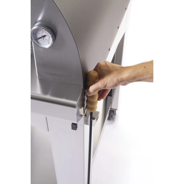 Pour le contrôle de la température, ce four a pizza Fontana Margherita comprend un système simple et efficace. Vous pourrez voir la température grâce au thermomètre intégré sur la structure. Si elle ne vous convient pas, vous n’aurez qu’à régler le clapet de la cheminée d’évacuation (le fermer pour baisser l’apport en oxygène et donc la combustion, l’ouvrir pour augmenter la chauffe).