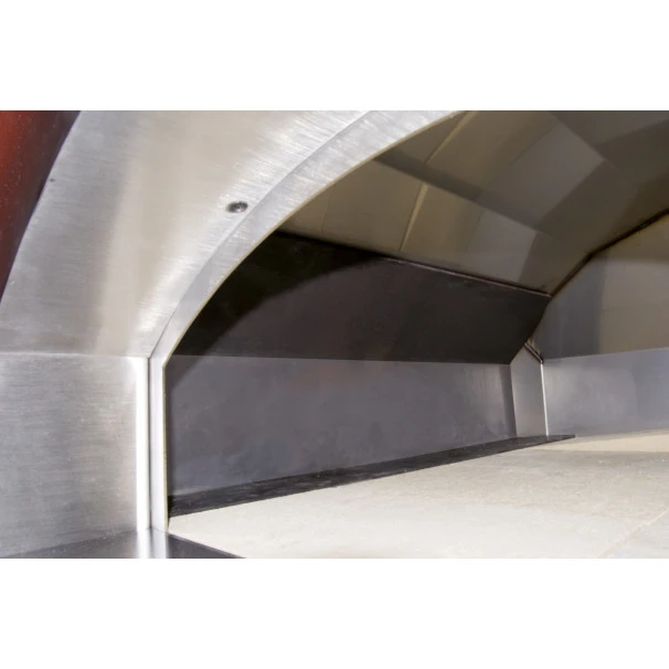 Au coeur du foyer est placée une pierre en chamotte réfractaire. Elle permet de diffuser la chaleur de façon constante et doucement afin que la cuisson ressemble en tout point à celles réalisées dans les fours à pizza bois traditionnelles. Grâce à une isolation efficace, la température peut monter jusqu’à 480°C. C’est la plus haute température du marché sur des fours à bois de même gabarit.