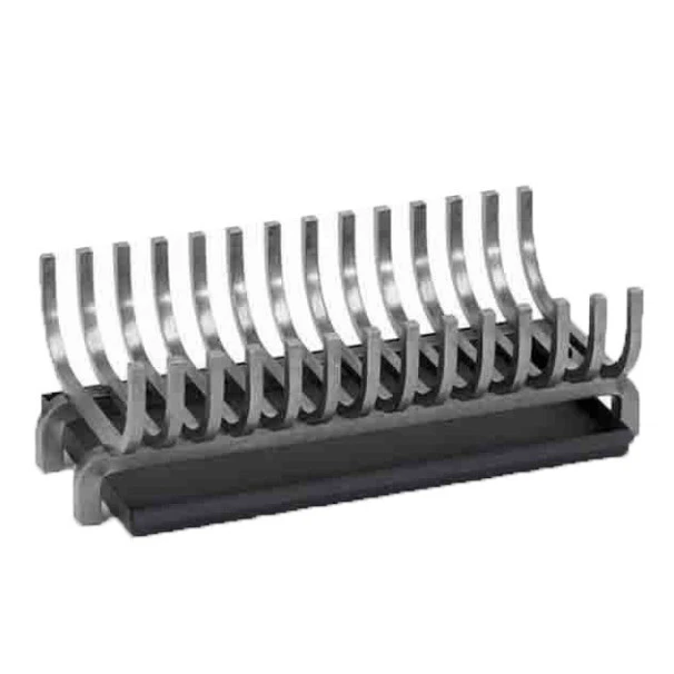 Également appelée berceau de cheminée, la grille de foyer permet de retenir bûches et braises, tout en laissant s’écouler les cendres au fur et à mesure de la combustion