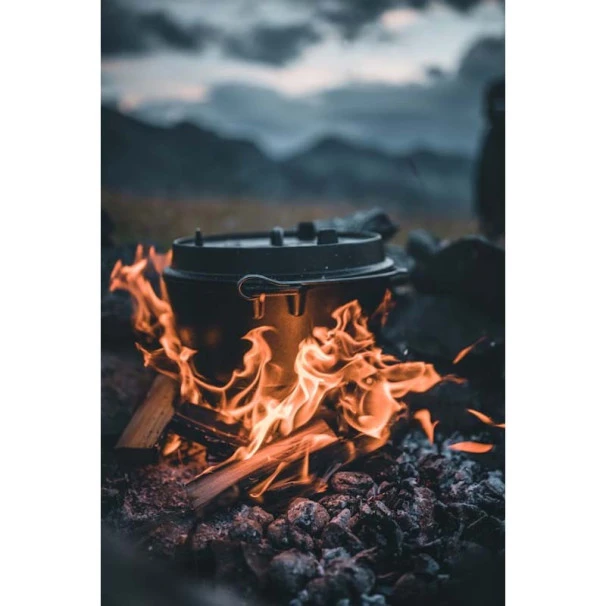 GrĂące Ă sa fabrication en fonte, la chaleur est conservĂ©e et distribuĂ©e de maniĂšre trĂšs efficace. En plein air, la marmite peut ĂȘtre utilisĂ©e sur un feu ouvert ou bien avec du charbon et des briquettes. GrĂące au bord Ă©levĂ© du couvercle, braises et charbon peuvent ĂȘtre placĂ©s sur la marmite en fonte. La marmite est ainsi chauffĂ©e de tous cĂŽtĂ©s.