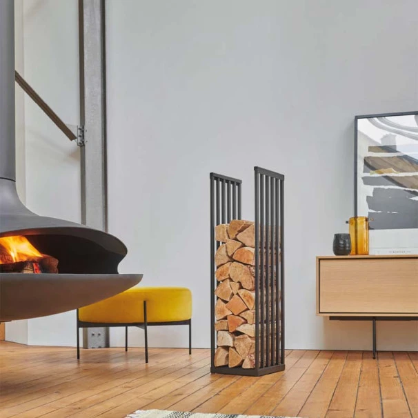 Ce rangement d’intérieur pour bûches aux lignes verticales sera parfait pour votre cheminée. Sa structure en acier et ses lignes droites en font un très bel objet d’intérieur. Sa couleur « noir givré » associée à son dessin industriel chic s’accorderont parfaitement avec des poêles, des cheminées modernes ainsi que des cheminées plus traditionnelles, en pierre ou en métal.