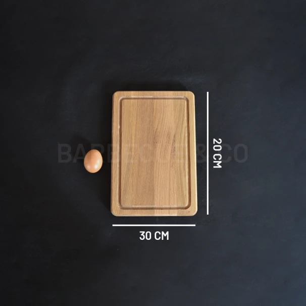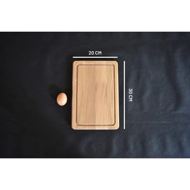 Présentation de la planche à découper en chêne avec rigole 30 x 20cm