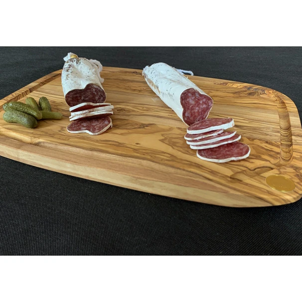 Adaptée depuis des siècles à la découpe en cuisine, cette planche en olivier permet la découpe d’aliments tels que la viande, le poisson, les légumes et bien d’autres encore. Dotée de rigole, l’écoulement issu de la découpe de certains aliments viendra se positionner directement à l’intérieur, ce qui évitera d’avoir un plan de travail sali.