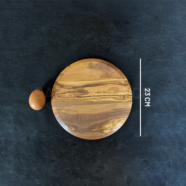 Cette planche à découper ronde en bois d’olivier est fabriquée dans tout le bassin méditerranéen et manuellement. De grande qualité artisanale, elle est résistante et authentique.