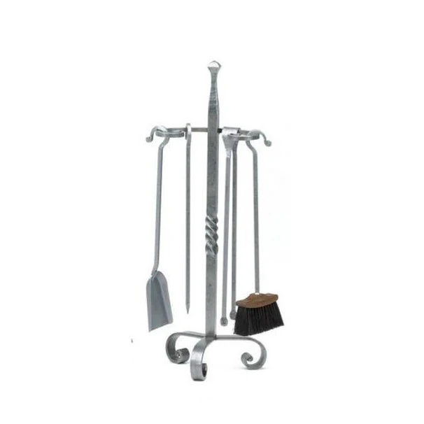 Le serviteur prend la forme d’une colonne avec une barre transversale pour y disposer les 4 accessoires (compris avec) pour l’entretien de la cheminée : pelle à cendres, balai, tisonnier et pince à bûches.