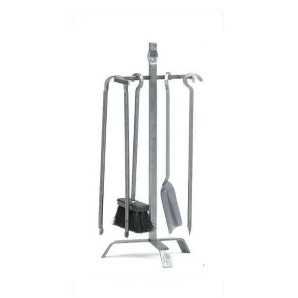 Le serviteur prend la forme d’une colonne aplatie avec une barre transversale pour y disposer les 4 accessoires (compris avec) pour l’entretien de la cheminée : pelle à cendres, balai, tisonnier et pince à bûches.