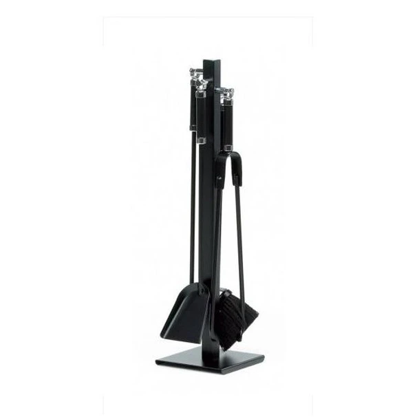 Le serviteur prend la forme d’une colonne carrée avec des crochets pouvant accueillir les 4 accessoires (compris avec) pour l’entretien de la cheminée : pelle à cendres, balai, tisonnier et pince à bûches.