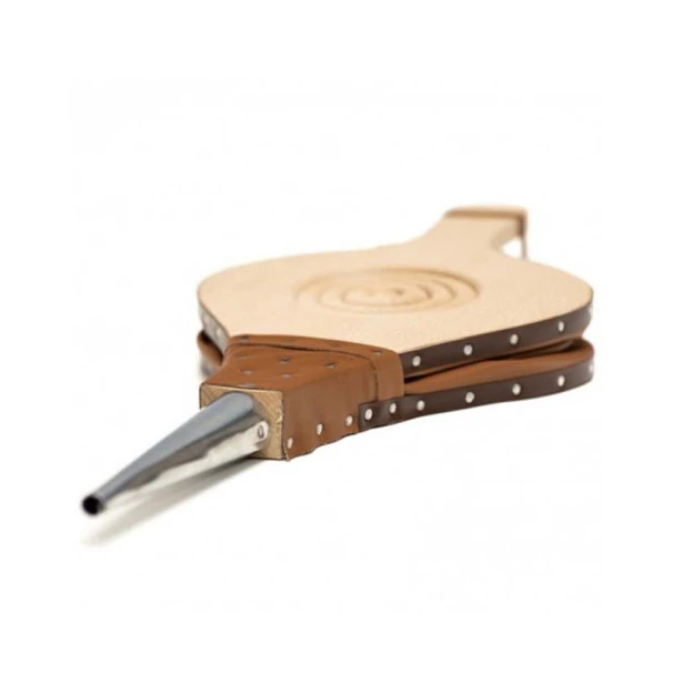 Accessoire indispensable des propriétaires de cheminée, le soufflet Blizzard arbore un design traditionnel : flasques (poignées) construites à partir de bois de hêtre naturel avec un dessin de rosace gravé dessus, une poche plastifié marron clair pour la réserve d’air, des clous, un tube et un embout en fer blanc.