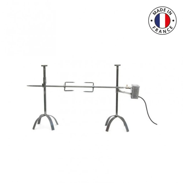 - Ce tournebroche dispose d’un moteur électrique pouvant retourner un gibier de 10 kg maximum (2t/min).