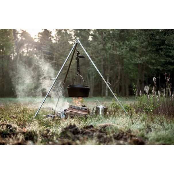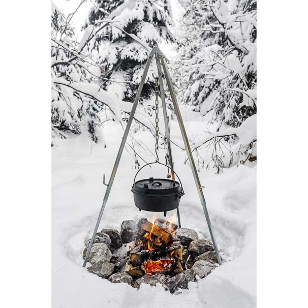 La chaine est réglable en hauteur, et la cuisine sur le feu devient une expérience particulièrement agréable ! Les extrémités biseautées assurent un maintien stable du trépied sur différents types de sols. Chaque pied est réglable en hauteur afin d’équilibrer facilement le trépied lorsque la surface du sol est inégale.
